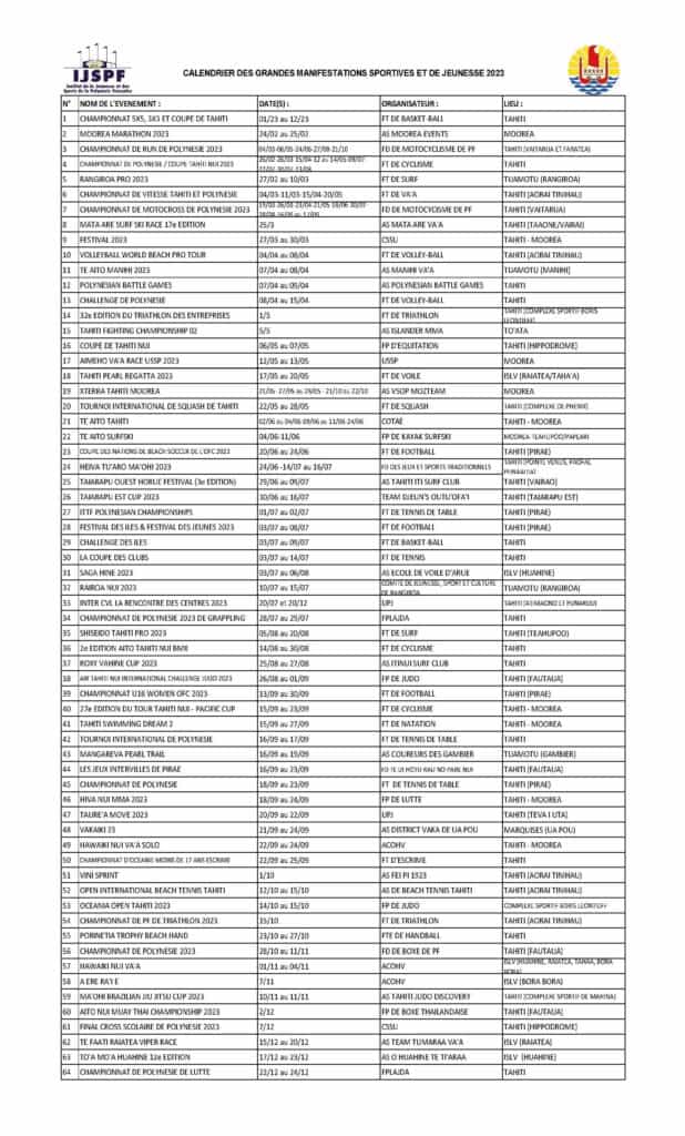 Le calendrier 2023 des grandes manifestations sportives et de jeunesse du Pays